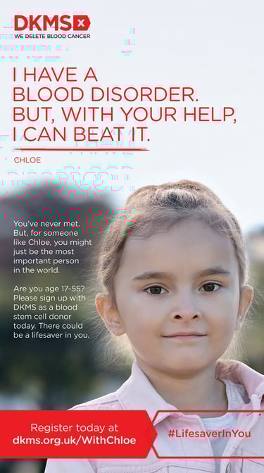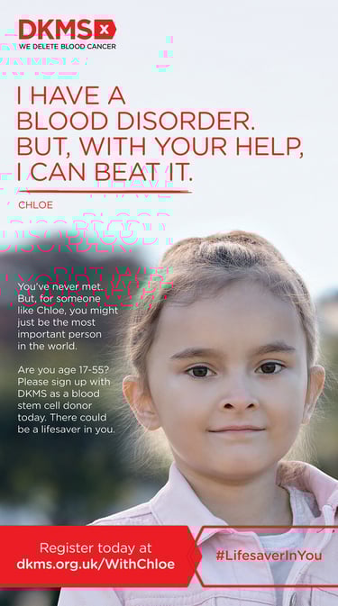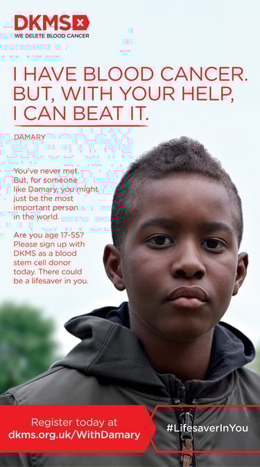 DKMS UK’s business objective was to recruit 80,000 new potential stem cell donors by year end 2018.The objective of this particular campaign was to recruit 600 potential blood stem cell donors, aged 18-55 years old, to the DKMS register each month of the campaign period.