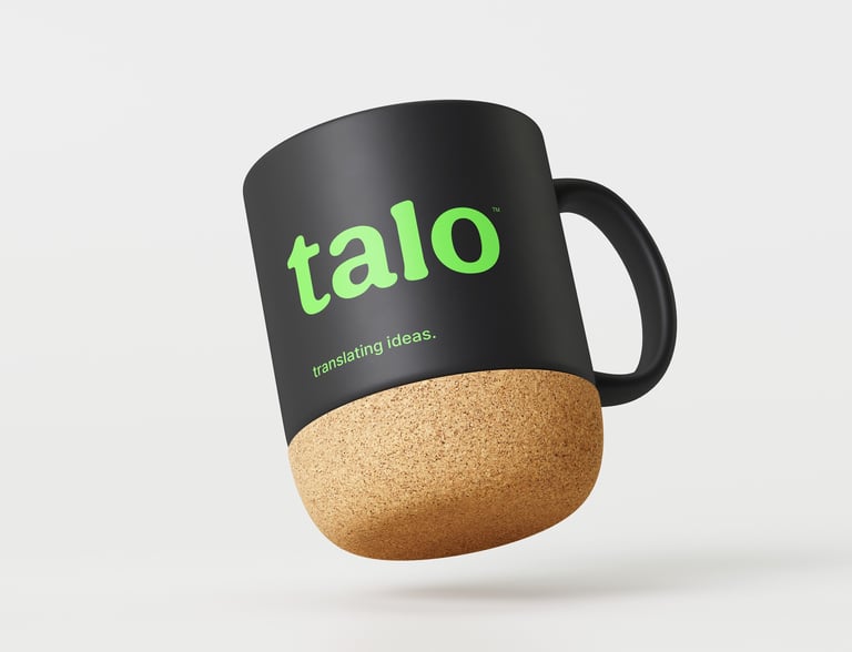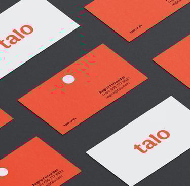 The overall aesthetic is sophisticated yet approachable, balancing simplicity with impact. This identity system ensures Talo™ communicates with confidence, memorability, and visual consistency across all brand touchpoints.